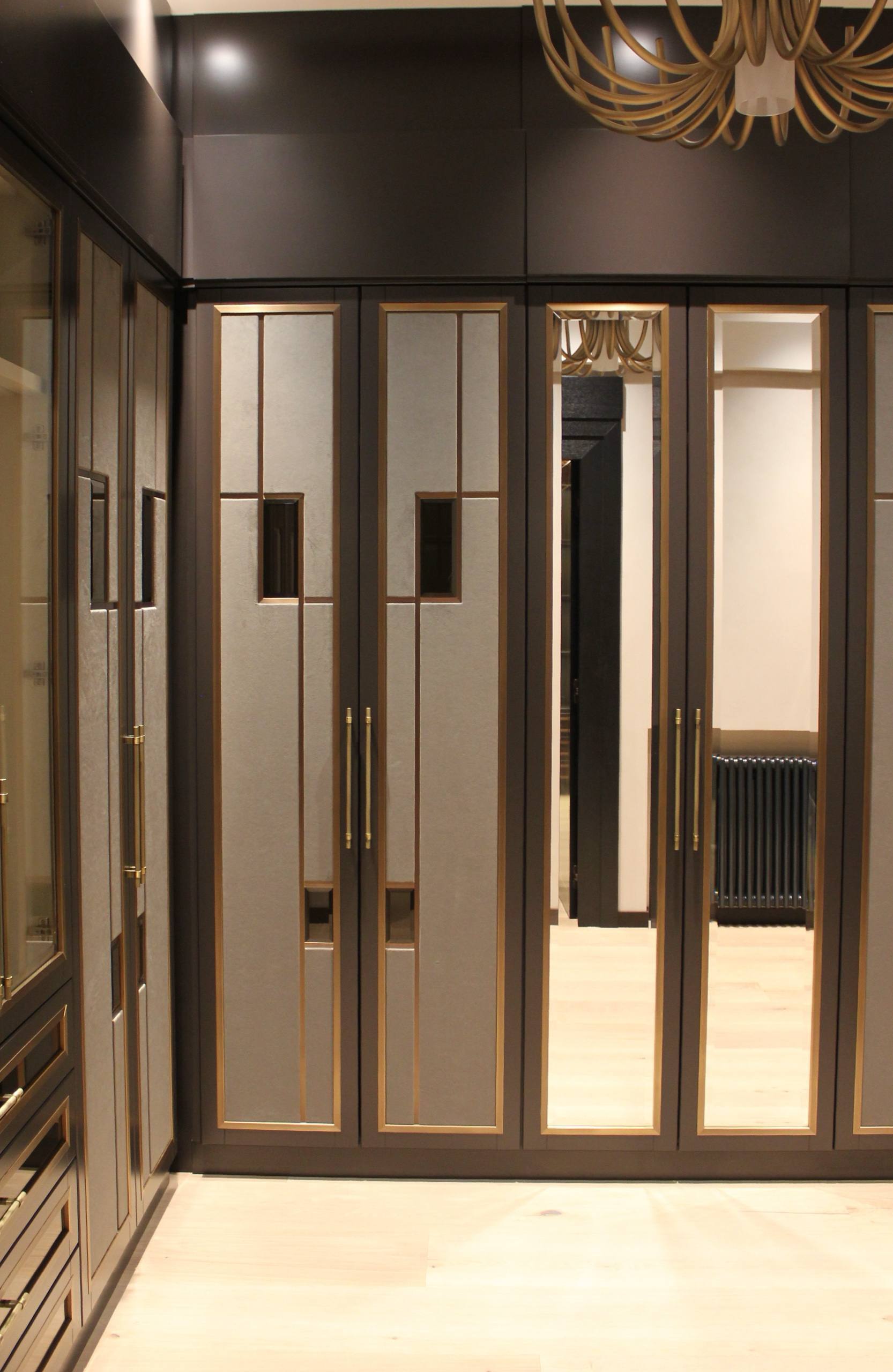 Для отделки корпусов и фасадов шкафов гардеробных мы применяем особые материалы - металлические вставки из серебра, латуни, меди, искусственную и натуральную кожу, различные виды ткани, включая дорогую алькантару, а также закаленное стекло с тонировкой и натуральный камень. В проекте мы учитываем общий стиль дома и пожелания заказчика, создавая неповторимый вид.