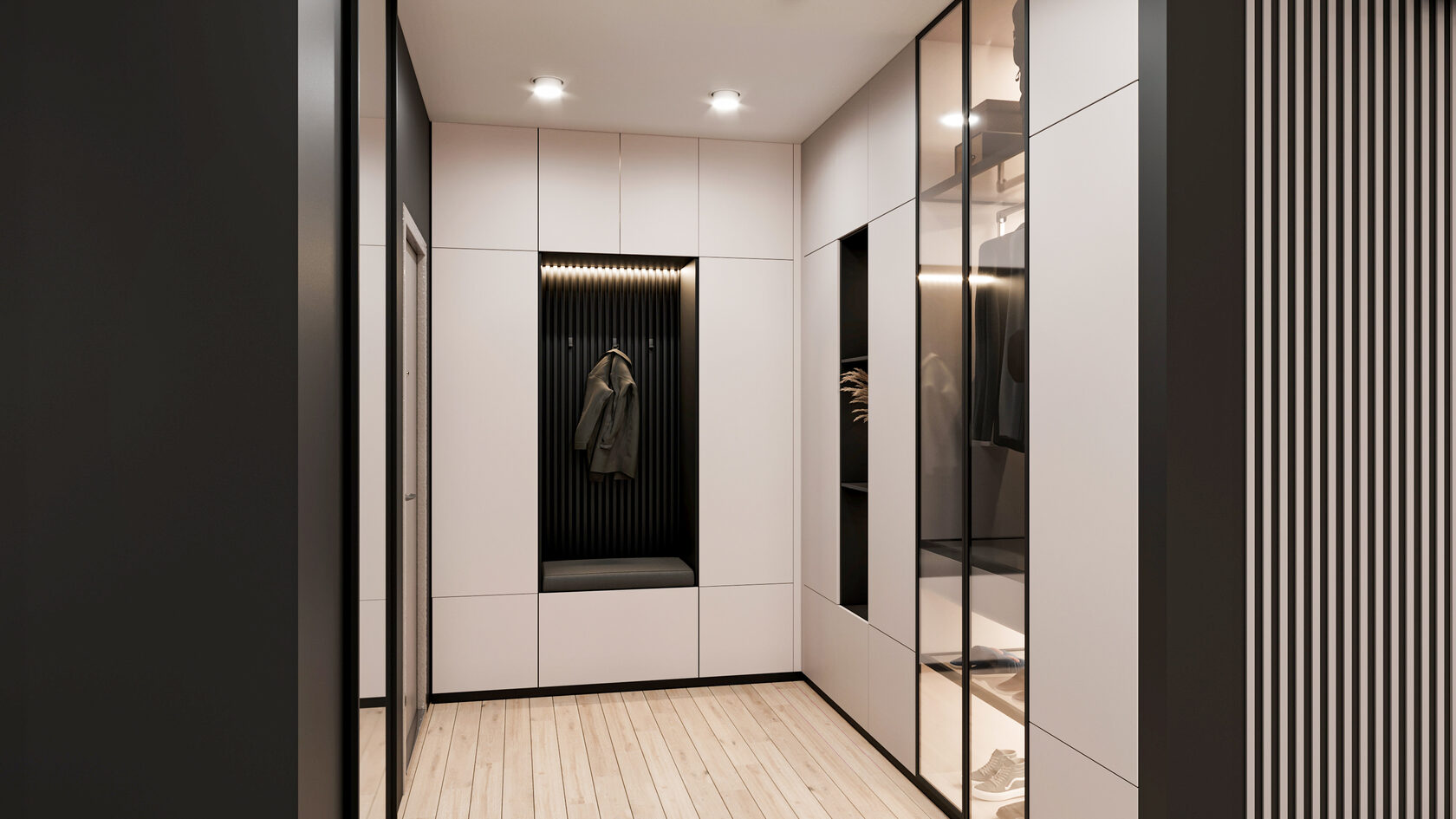 Гардеробная комната Ultimatum – это бескомпромиссное решение, сочетающее в себе современную практичность, минимализм, аккуратность и дороговизну.